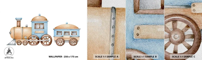 Amostra de papel de parede Premium Sand - Parado na estação... - Infantil, Trem, Retrô - 100x30 cm