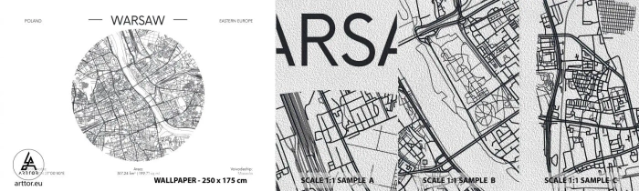 Amostra de papel de parede Premium Sand - Anatomia de Varsóvia - Mapa, Varsóvia, Polônia - 100x30 cm