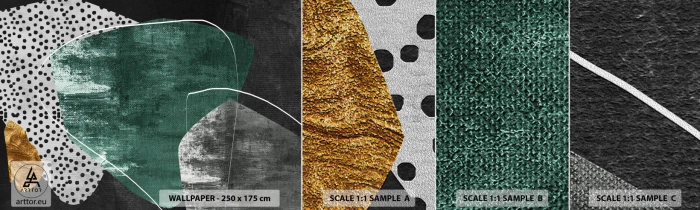 Amostra de papel de parede Premium Sand - Abstração colorida com folha de ouro - Abstração, Textura, Colagem - 100x30 cm