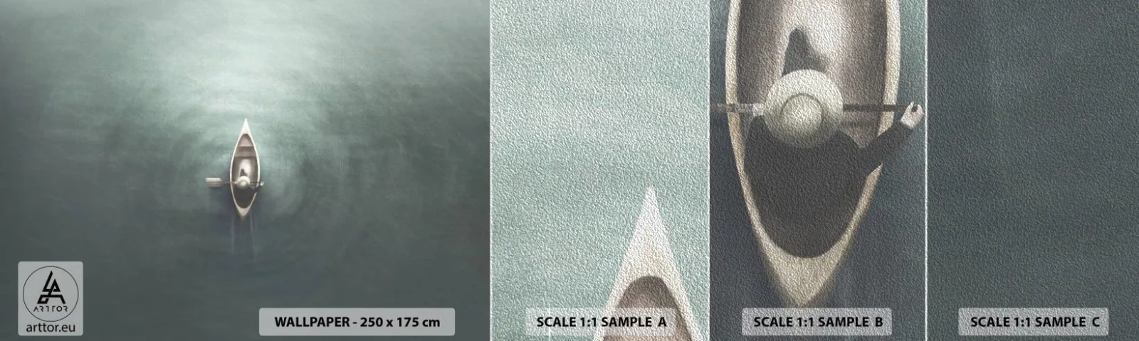 Amostra de papel de parede Premium Sand - Através do lago da lua - Compostura, Lago, Caiaque - 100x30 cm