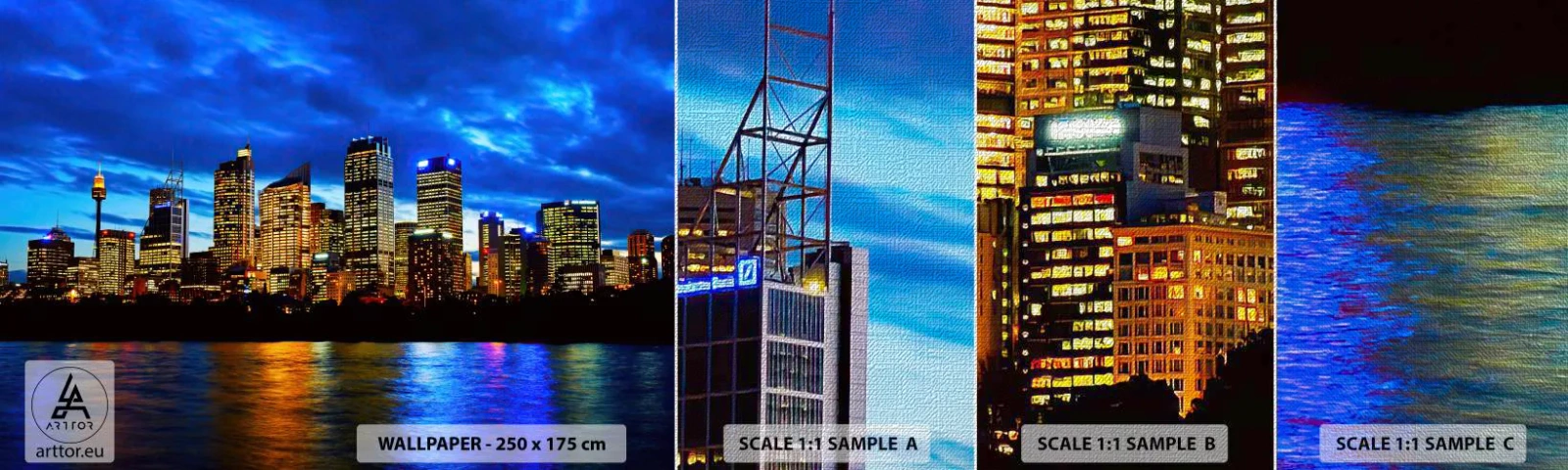 Amostra de papel de parede Premium Canvas - Uma noite de luzes e cores - Cidade, Sidney, Arquitetura - 100x30 cm