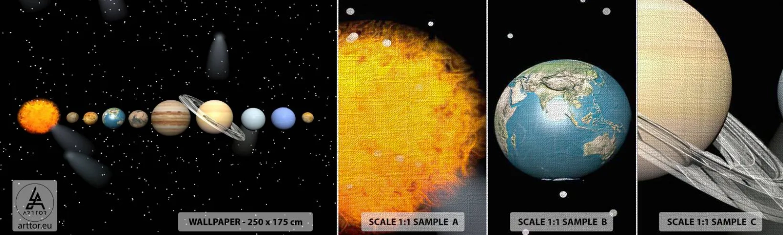 Amostra de papel de parede Premium Canvas - E os planetas estão a enlouquecer... - Espaço e Astronomia, Sistema solar, Planetas - 100x30 cm