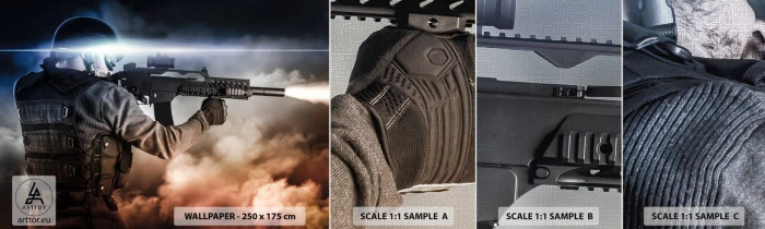 Amostra de papel de parede Premium Canvas - Simplesmente um herói - Militares, Arma, Soldado - 100x30 cm