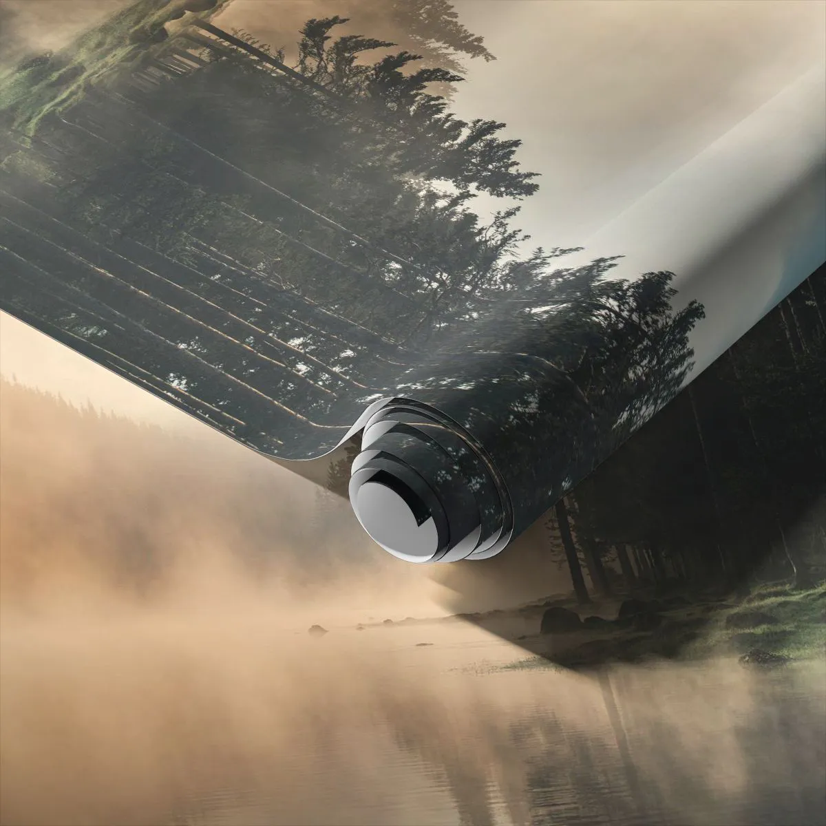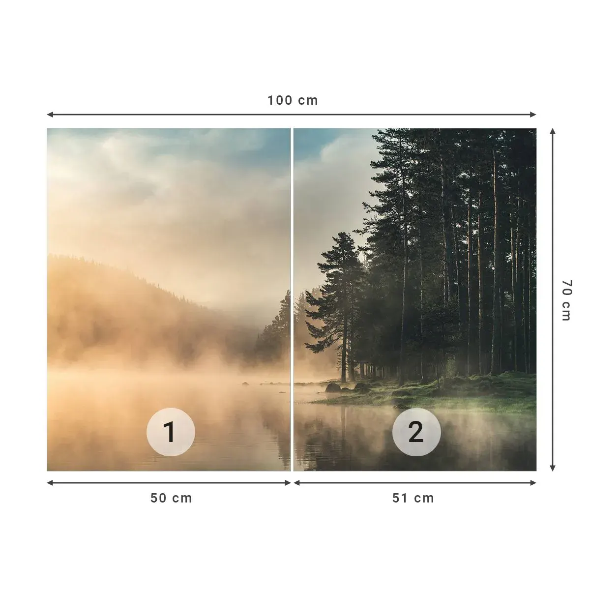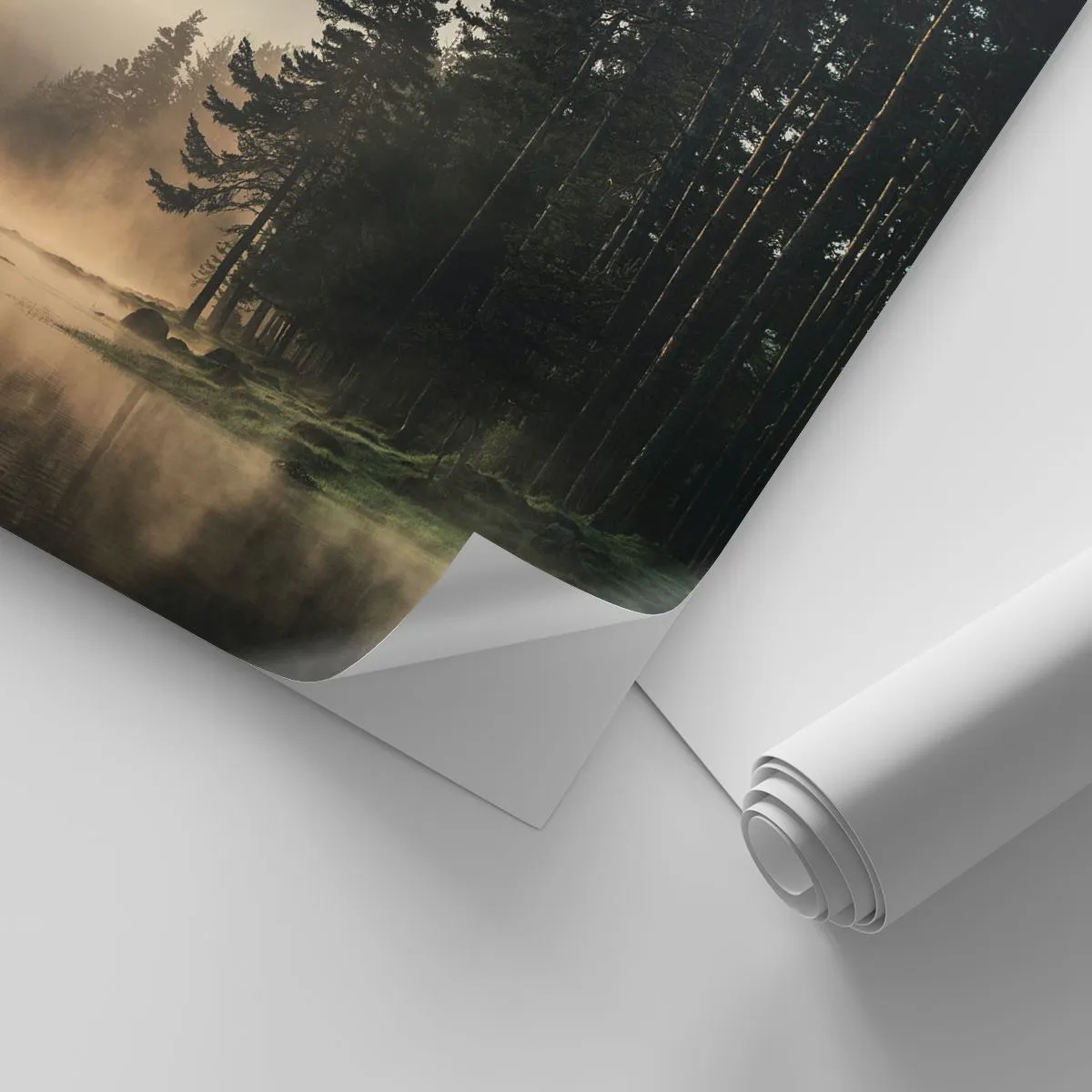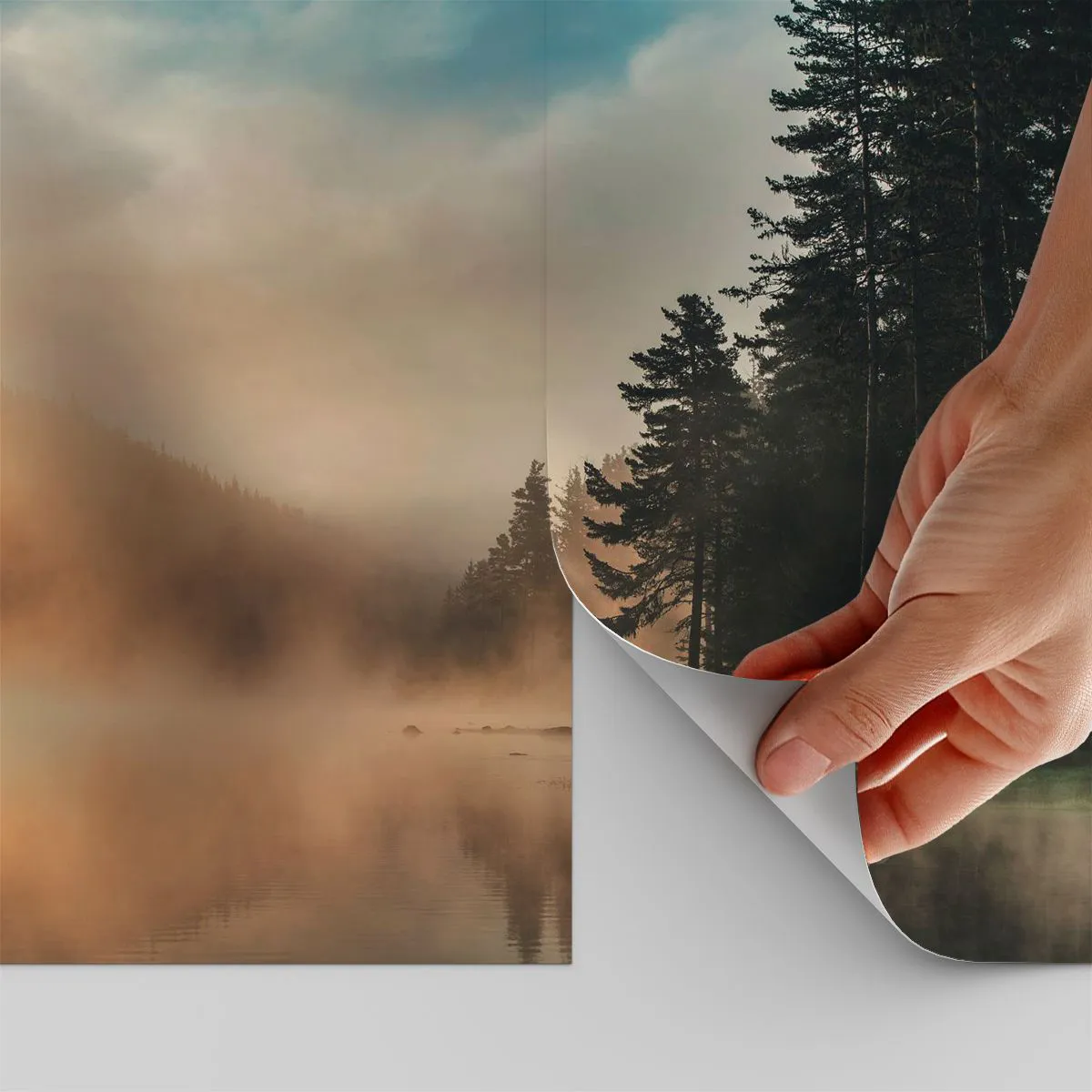 Papel de Parede Autocolante Deluxe Sticker - O nascimento do dia - Paisagem, Lago, Floresta - 100x70 cm