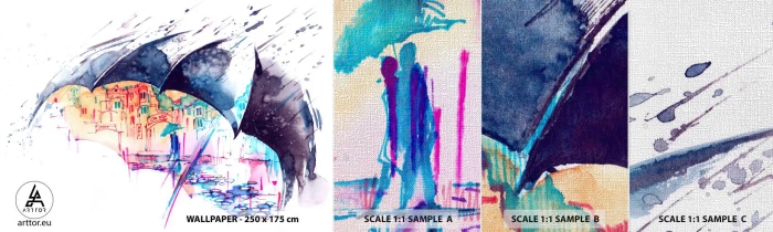 Amostra de papel de parede Premium Canvas - Passeio na chuva - Abstração, Guarda-chuva, Arquitetura - 100x30 cm