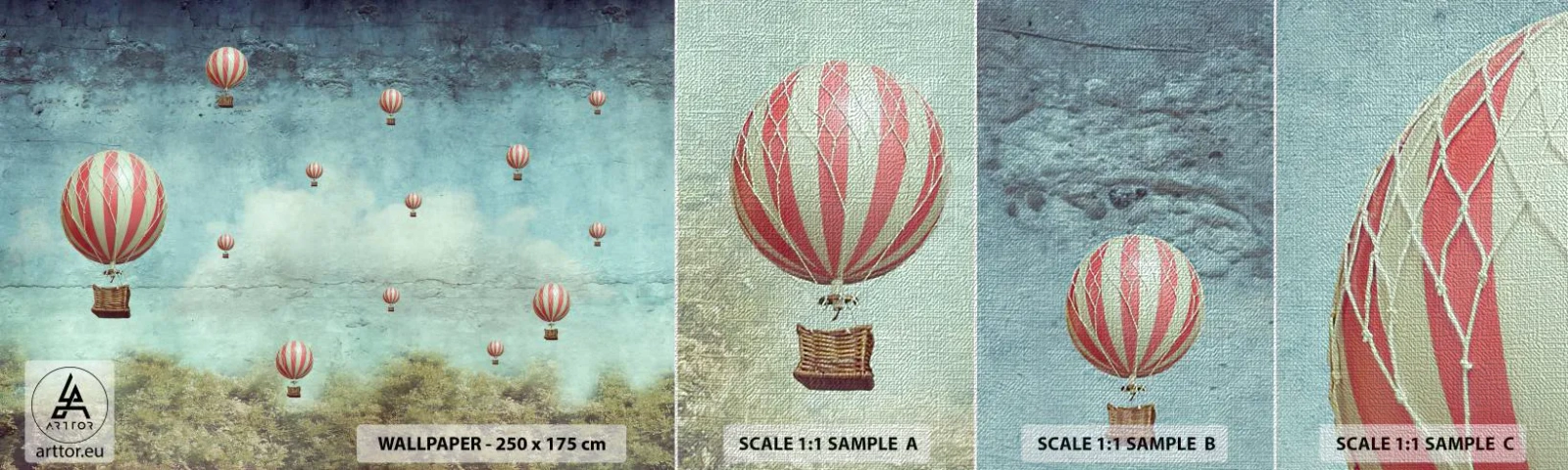 Amostra de papel de parede Premium Canvas - Livres da azáfama da vida - Abstração, Viagem, Voo de balão - 100x30 cm