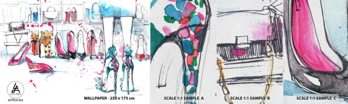 Amostra de papel de parede Premium Canvas - Abre-te, sésamo - Guarda-roupa feminino, Moda, Bolsa - 100x30 cm
