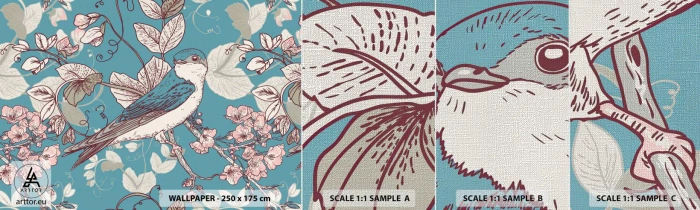 Amostra de papel de parede Premium Canvas - Cantos no choupo-branco - Abstração, Engolir, Pássaro - 100x30 cm