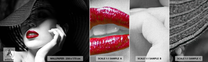 Amostra de papel de parede Premium Canvas - Um estudo em vermelho - Mulher, lábios vermelhos, Moda - 100x30 cm