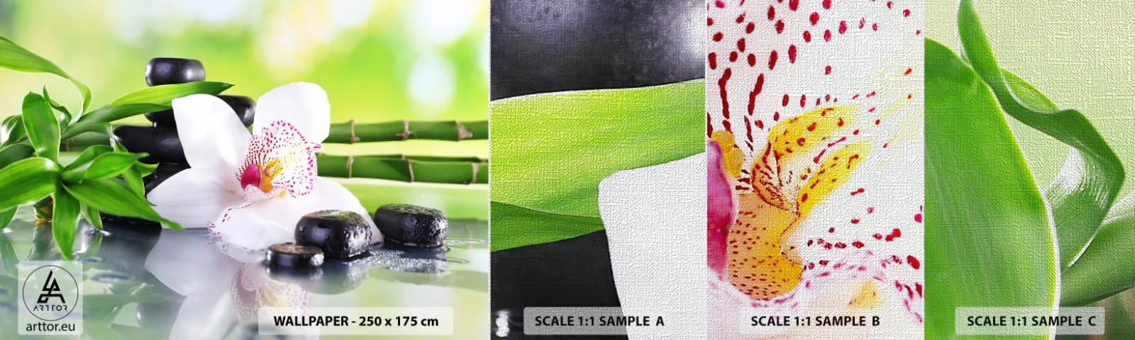 Amostra de papel de parede Premium Canvas - Frescor e vigor - Bambu, Flor, Orquídea - 100x30 cm