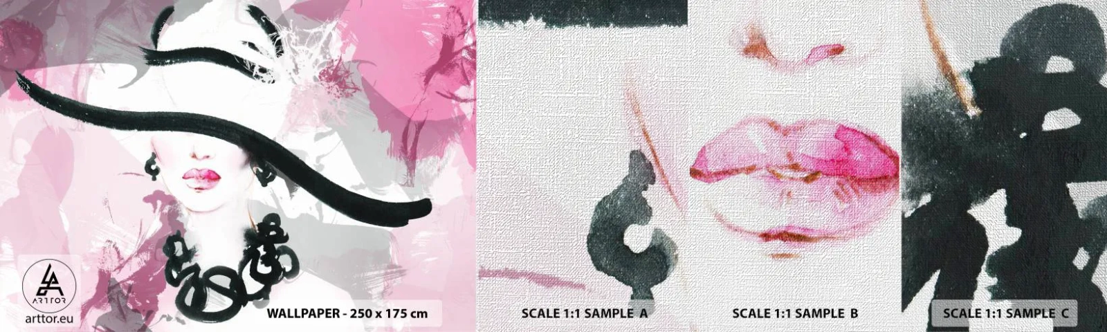 Amostra de papel de parede Premium Canvas - Retrato de uma dama a preto e rosa - Mulher, Rosto de mulher, Abstração - 100x30 cm