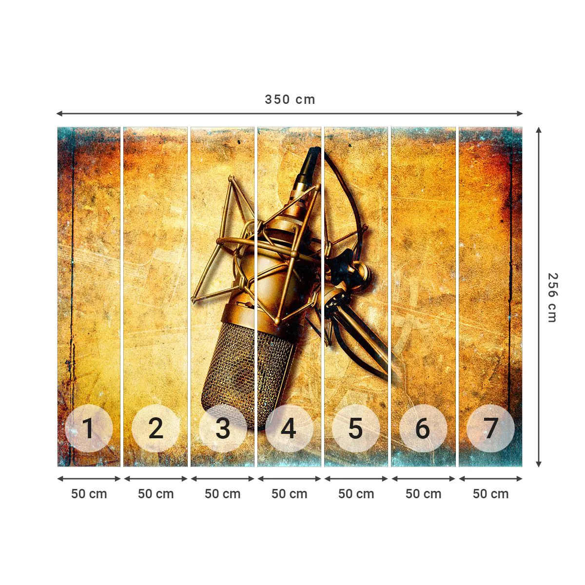 Papel de Parede Premium Sand - Os Anos Dourados da Rádio - Microfone, Música, Retrô - 350x256 cm