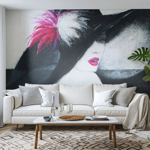 Papel de parede personalizado Standard Eco - Sempre misteriosa - Mulher de chapéu, Rosto de mulher, lábios vermelhos