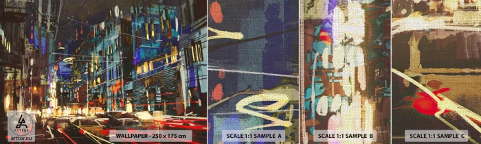 Amostra de papel de parede Premium Canvas - O alvoroço da rua à noite - Cidade, Arquitetura, Vida noturna - 100x30 cm
