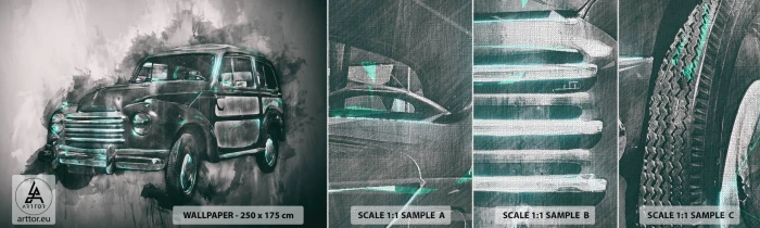 Amostra de papel de parede Premium Canvas - Ancestral respeitável - Carro retrô, Automotivo, Viagem - 100x30 cm