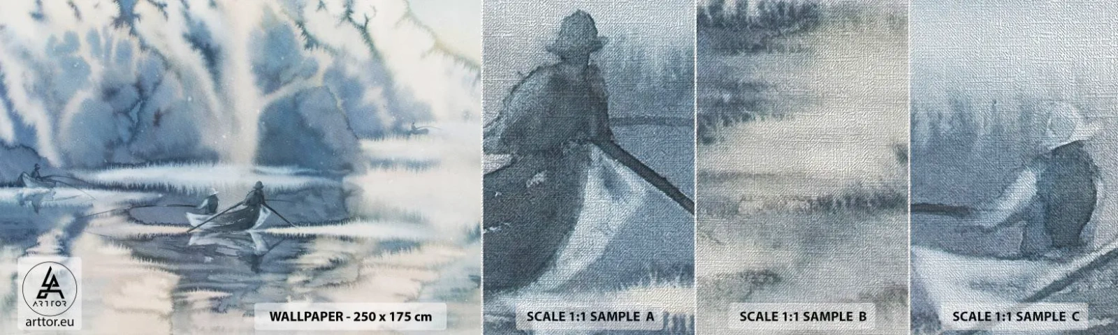 Amostra de papel de parede Premium Canvas - Pescadores no seu paraíso - Abstração, Lago, pescaria - 100x30 cm