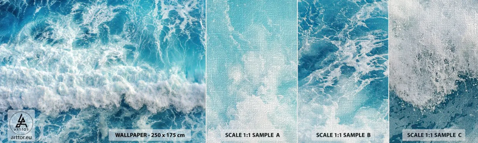 Amostra de papel de parede Premium Canvas - Alegremente e aos saltos - Mar, Onda do mar, Natureza - 100x30 cm