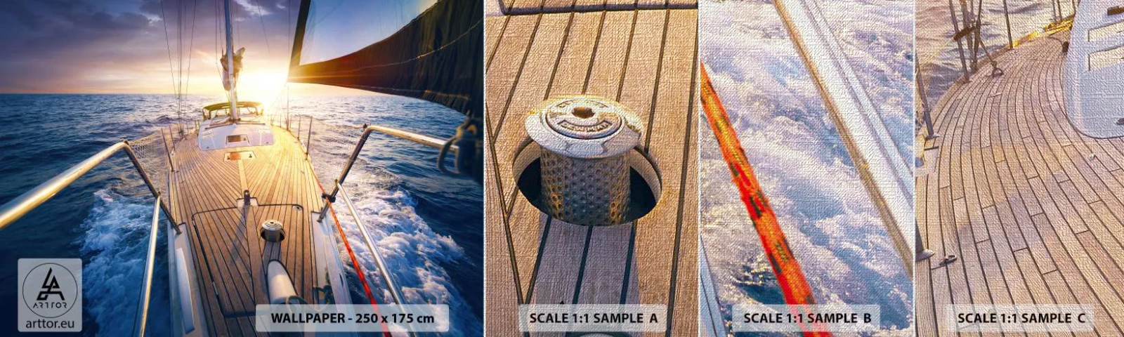 Amostra de papel de parede Premium Canvas - Correr sobre as ondas - Iate à vela, Mar, navegação - 100x30 cm
