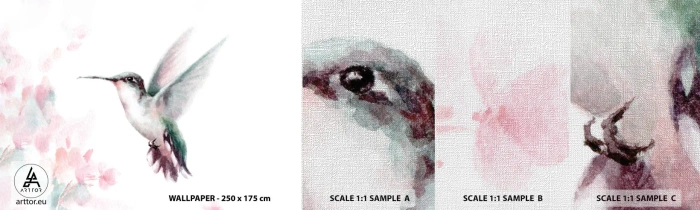 Amostra de papel de parede Premium Canvas - Preso em agitação - Beija Flor, Pássaro, Pedaço - 100x30 cm