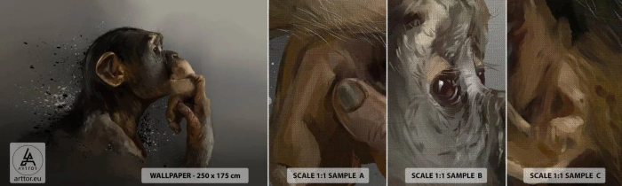 Amostra de papel de parede Premium Canvas - Certamente um pensador - Animais, Macaco, Pedaço - 100x30 cm
