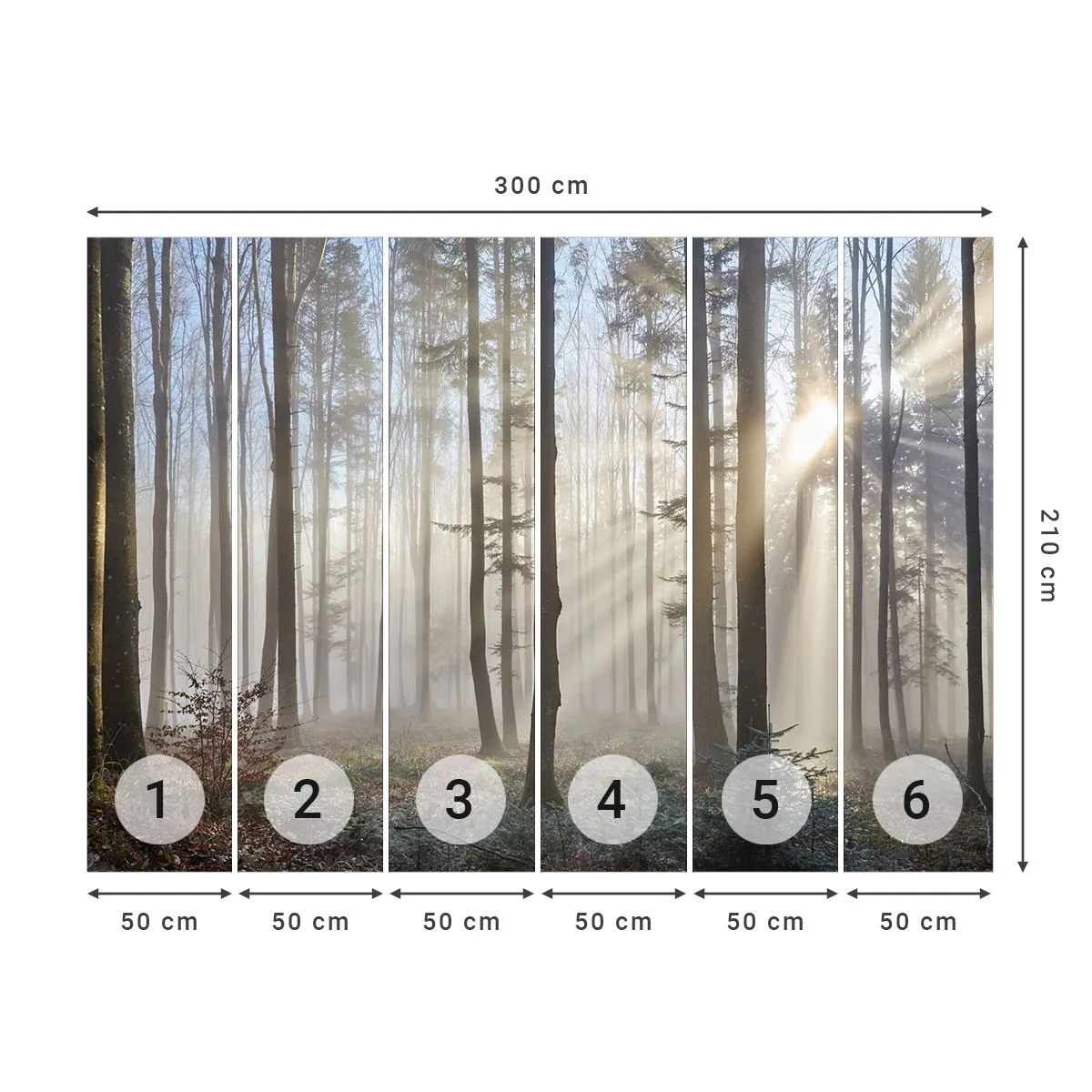 Papel de Parede Premium Sand - O nevoeiro também acordou - Paisagem, Floresta, Névoa - 300x210 cm