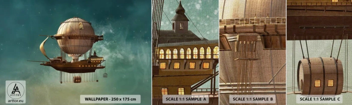 Amostra de papel de parede Premium Canvas - Saudações de Júlio Verne - Retrô, Viagem, Balão - 100x30 cm