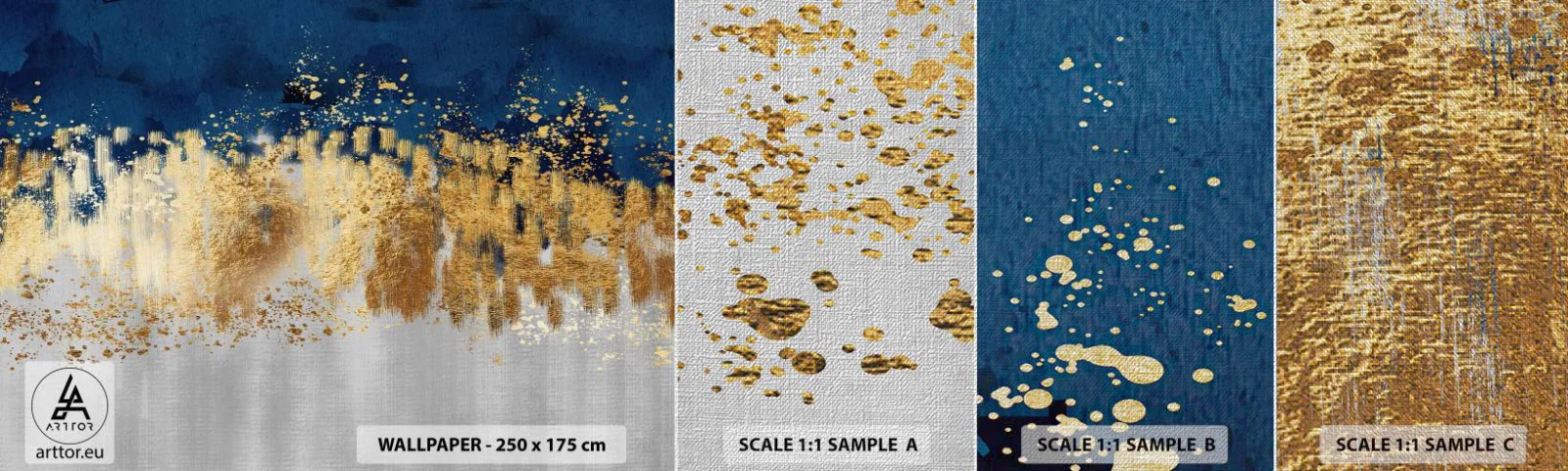 • Arte, Art Déco, Glamour, Abstrações, Para o escritório, Para o escritório, Para a sala de jantar, Para o hall, Para a sala de estar, Para o quarto, Azul, Cinza, Dourado