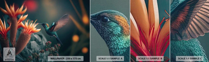 Amostra de papel de parede Premium Canvas - Uma vida verdadeiramente colorida - Pássaro, Exótico, Flor - 100x30 cm