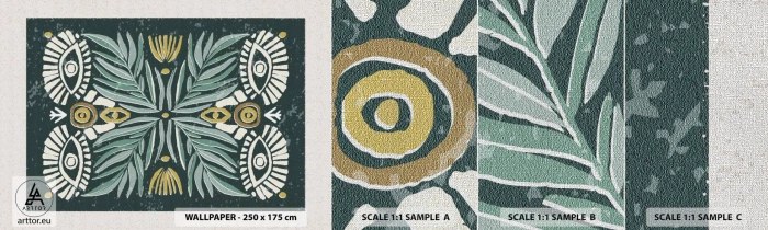 Amostra de papel de parede Premium Canvas - Como um recorte folclórico - Boho, Padrão, Botânica - 100x30 cm
