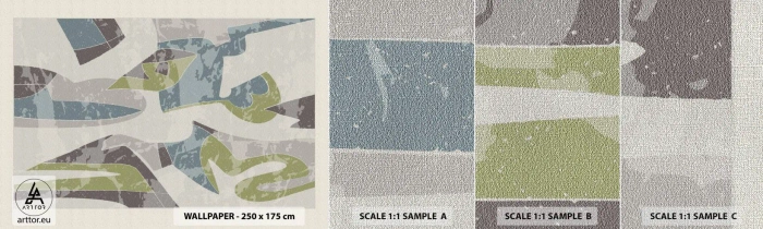 Amostra de papel de parede Premium Canvas - Composição atrás do vidro - Formas, Abstração, Pastel - 100x30 cm
