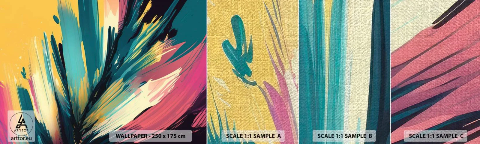 Amostra de papel de parede Premium Canvas - Composição – uma explosão de alegria - Abstracionismo, Pedaço, Moderno - 100x30 cm
