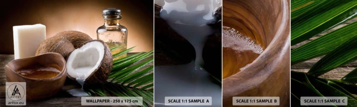 Amostra de papel de parede autocolante Deluxe Sticker - Saúde das ilhas tropicais - Coco, Spa, Óleo de côco - 100x30 cm
