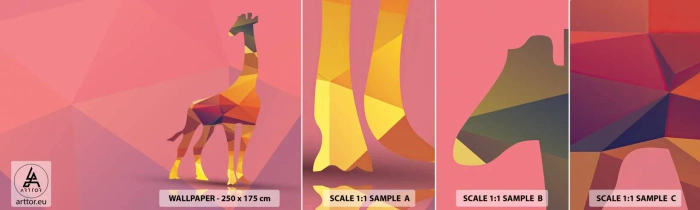 Amostra de papel de parede autocolante Deluxe Sticker - Nas cores da savana - Animais, Girafa, Figura Geométrica - 100x30 cm