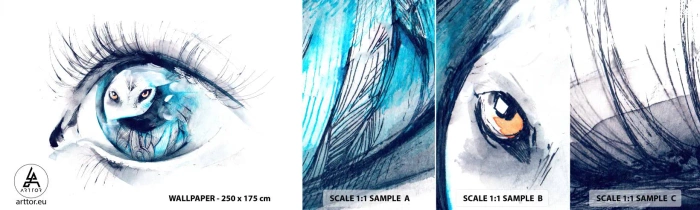 Amostra de papel de parede autocolante Deluxe Sticker - Cara a cara com o selvagem - Abstração, Olho, Coruja - 100x30 cm