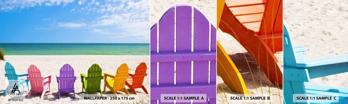 Amostra de papel de parede autocolante Deluxe Sticker - Praia do arco-íris - Paisagem, Praia, Cadeiras de praia - 100x30 cm