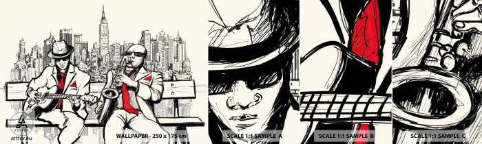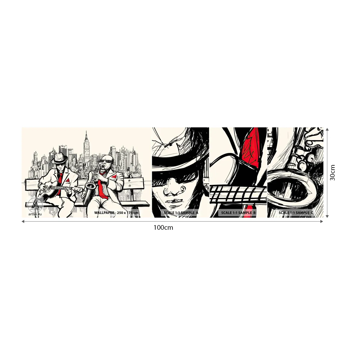 Amostra de papel de parede autocolante Deluxe Sticker - Improvisação nova-iorquina - Música, Jazz, Nova Iorque - 100x30 cm