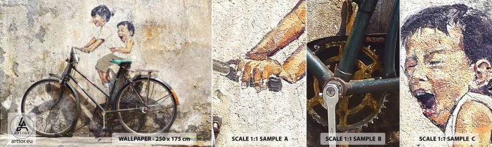 Amostra de papel de parede autocolante Deluxe Sticker - Verdadeiro ou falso? - Abstração, Mural, Bicicleta - 100x30 cm