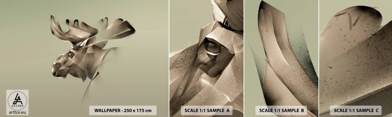 Amostra de papel de parede autocolante Deluxe Sticker - O poder suave da calma - alce, Abstração, Pedaço - 100x30 cm