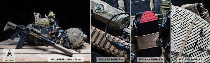 Amostra de papel de parede autocolante Deluxe Sticker - Descanse! - Militares, Rifle, Arma - 100x30 cm
