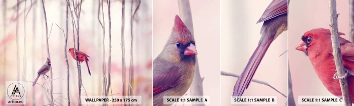 Amostra de papel de parede autocolante Deluxe Sticker - O Conto da floresta rosa - Pássaro, Natureza, Floresta - 100x30 cm