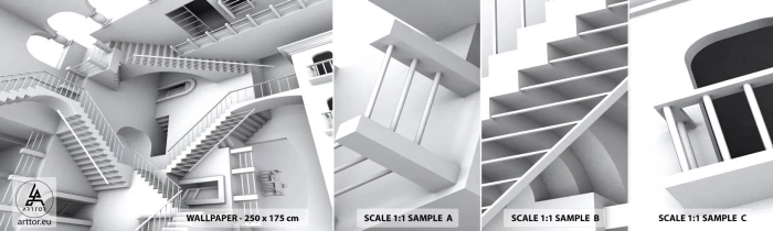 Amostra de papel de parede autocolante Deluxe Sticker - Paradoxos do espaço - Abstração, 3D, Arquitetura - 100x30 cm