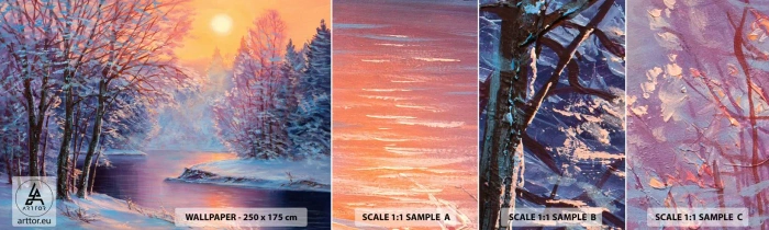Amostra de papel de parede autocolante Deluxe Sticker - Cores do inverno - Paisagem, Rio, Floresta - 100x30 cm