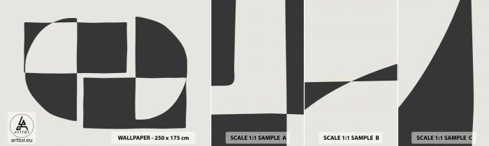 Amostra de papel de parede autocolante Deluxe Sticker - Antítese – síntese - Abstração, Pedaço, Preto e branco - 100x30 cm
