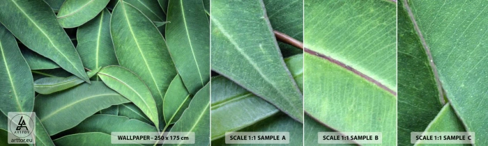 Amostra de papel de parede autocolante Deluxe Sticker - Suculentas e frescas - Folhas, Eucalipto, Natureza - 100x30 cm