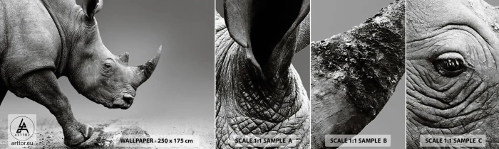 Amostra de papel de parede autocolante Deluxe Sticker - Força imparável - Rinoceronte, Animais, África - 100x30 cm