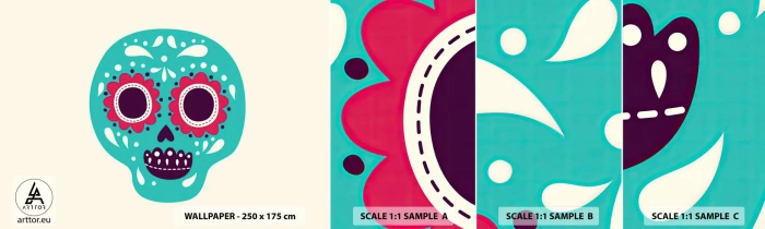 Amostra de papel de parede autocolante Deluxe Sticker - Vida – diversão até a morte - Crânio, México, mexicano - 100x30 cm