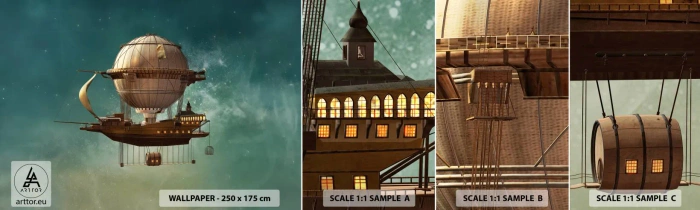 Amostra de papel de parede autocolante Deluxe Sticker - Saudações de Júlio Verne - Retrô, Viagem, Balão - 100x30 cm