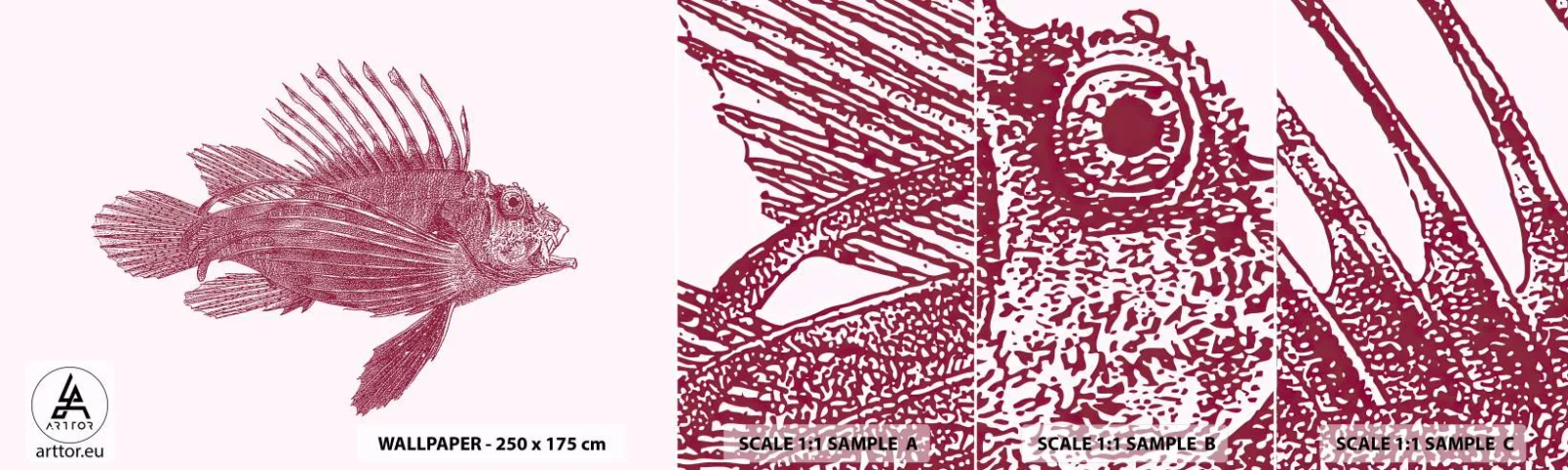 Amostra de papel de parede autocolante Deluxe Sticker - Um habitante de águas exóticas - Peixe, Peixe-Leão, Tropical - 100x30 cm