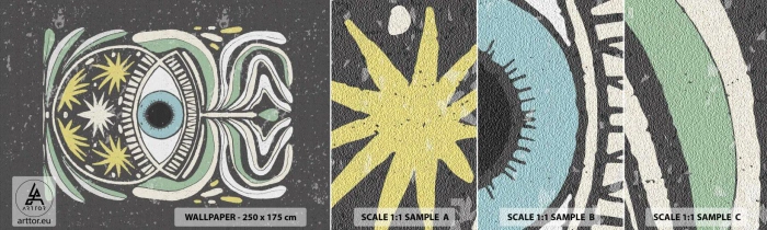 Amostra de papel de parede autocolante Deluxe Sticker - Rituais tribais - Boho, Olho, Pastel - 100x30 cm