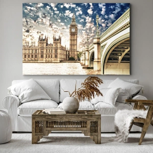 Esta pintura é uma excelente escolha para interiores em estilo clássico, retrô ou moderno. Ela complementará perfeitamente uma sala de estar, escritório ou espaço representativo, trazendo uma atmosfera de elegância e inspiração. O Big Ben, como símbolo de Londres, adiciona personalidade à composição, atraindo a atenção com sua clareza e significado histórico.